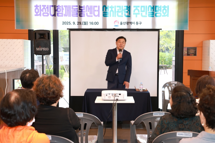 [뉴스스텝] 울산 동구는 9월 29일 오후 4시 힐스테이트 이스턴베이 1층 카페테리아에서 김종훈 동구청장과 주민 50여명이 참석한 가운데 ‘화정다함께돌봄센터’ 설치와 관련해 주민설명회를 개최했다.