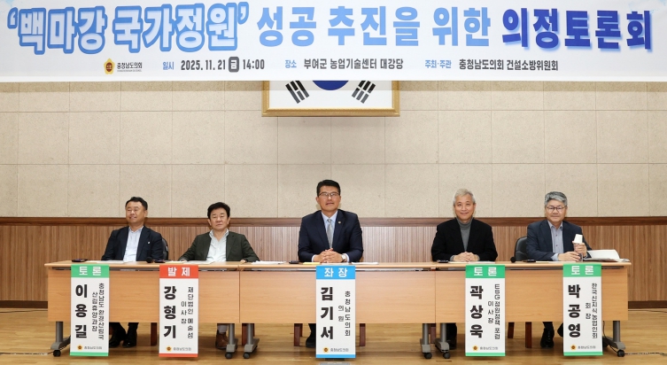 김기서 의원은 “백마강 국가정원 지정은 부여가 가진 고유의 역사·문화·생태 자원을 활용해 정원도시로 도약할 절호의 기회”라며 “도와 군, 전문가, 지역주민이 함께 지속가능한 모델을 만들어가야 한다”고 강조했다. 이어 “이번 토론회가 국가정원 승격을 위한 정책적·제도적 기반 마련의 시발점으로 이어져 국가정원 승격의 토대가 되길 기대한다”고 밝혔다.