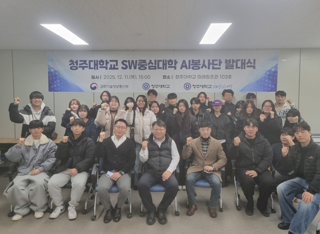 [뉴스스텝] 충청북도는 12월 11일 청주대학교 미래창조관에서 청주대학교 AI봉사단(1기, 30명)을 출범하고, 도내 AI 역량 강화를 위한 지역 밀착형 교육을 본격 추진한다고 밝혔다.