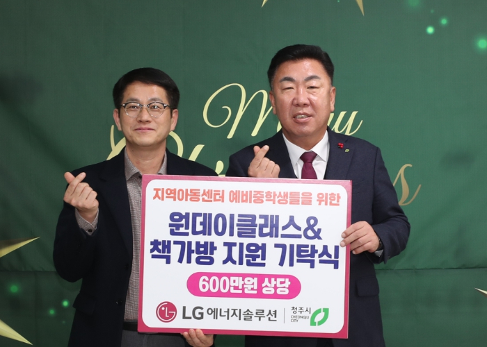 [뉴스스텝] 청주시와 LG에너지솔루션은 16일 지역아동센터를 이용하는 아동 중 예비 중학생과 함께하는 원데이 클래스를 열고 책가방을 후원하는 등 따뜻한 나눔 행사를 개최했다.