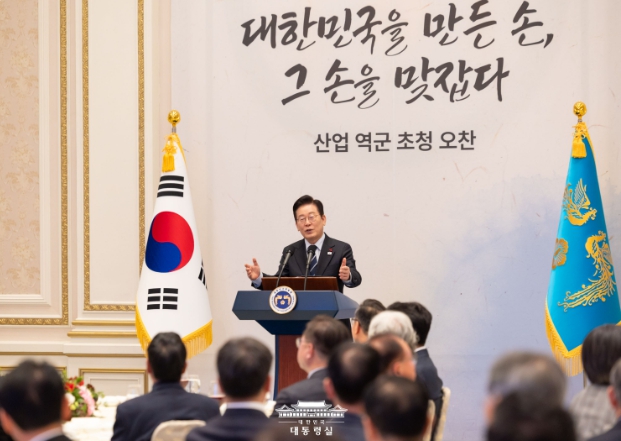 [뉴스스텝] 이재명 대통령은 오늘 오후 청와대 영빈관에서 우리나라의 산업을 일궈온 산업 역군 90여 명을 초청한 오찬 행사를 주최했다.