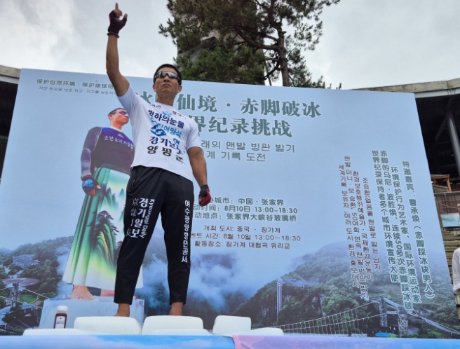 [뉴스스텝] 고흥군(군수 공영민)은 고흥군 홍보대사이자 국제 환경운동가인 ‘맨발의 사나이’ 조승환 씨가 10일 중국 장자제에서 ‘얼음 위 맨발 오래 서있기’ 세계신기록을 경신했다고 밝혔다.