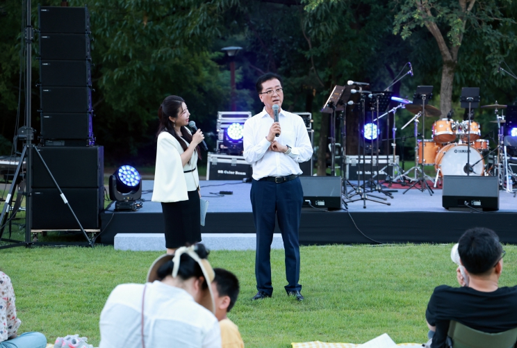 뮤직토크쇼는 올해 처음 시작해 연말까지 총 7회에 걸쳐 자치구별 생활권에서 개최되며, 첫 회인 오늘 행사는 지역을 대표하는 기관·단체장, 지역예술인, 시민 등 400여 명이 참석한 가운데 주요내빈의 축사를 시작으로 1부는 트렘페터 성재창과 금관 10중주의 클래식 이야기, 2부는 가수 임정희의 재즈 무대가 펼쳐져 시민들이 도심 속 여름밤을 음악과 함께 했다.