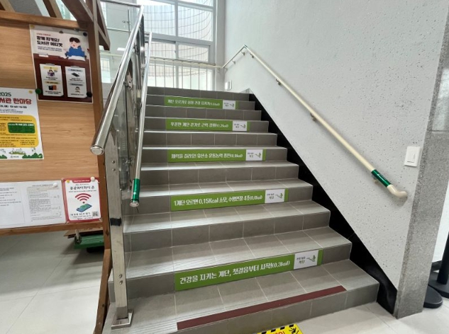 계단 오르기 운동은 일반적인 걷기보다 운동 강도가 2배 이상 높아, 별도의 장비나 시간을 들이지 않고도 실천할 수 있는 효율적인 신체활동으로 알려져 있다. 특히 바쁜 일상 속에서 운동할 시간이 부족한 주민들에게는 체력 증진과 심혈관계 질환 예방에 도움이 되는 간편한 건강생활 실천 방법이다.