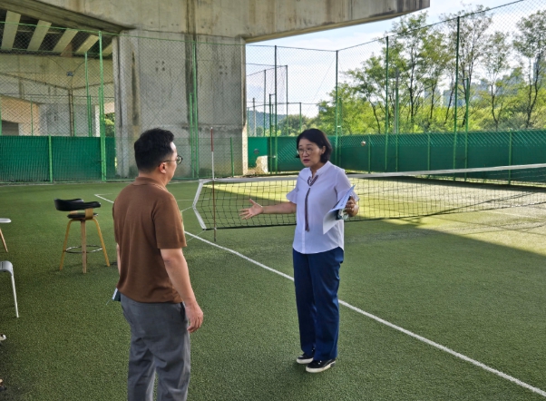 특히 신 의원은 화성시 체육진흥과 관계자와 함께 직접 영천동 족구장을 방문하여 올 10월 완공을 목표로 추진 중인 화장실 설치 예정 공간을 둘러보고, 안전하고 쾌적한 시설 조성을 위한 사항을 점검했다.