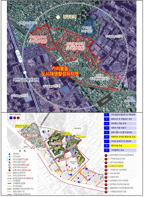 | ▲ 가리봉 도시재생활성화지역 위치도 및 종합구상도 변경(안) |