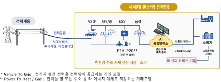 '한국형 차세대 전력망'은 재생에너지, ESS 등 분산 에너지를 AI 기술로 제어하여 전력 생산-저장-소비를 최적화하는 지능형 전력망(마이크로그리드)을 의미한다. 에너지 고속도로가 전국 계통에 필요한 송전망을 구축하는 것이라면 차세대 전력망은 지역 단위의 촘촘한 소규모 전력망을 배전망에 구축하는 것이다.