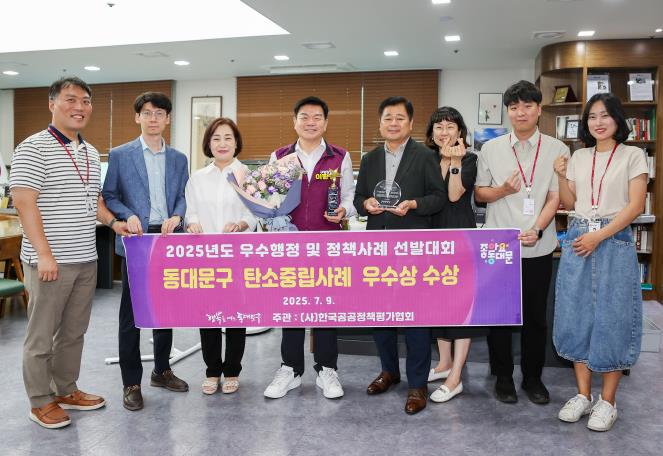 이필형 동대문구청장은 “이번 수상은 행정만의 성과가 아니라 주민과 민간, 지역사회가 함께 이뤄낸 결과라는 점에서 더욱 의미가 깊다.”라며 “앞으로도 구민이 일상에서 체감하고 실천할 수 있는 탄소중립 정책을 지속적으로 확대해 나가겠다.”라고 밝혔다.