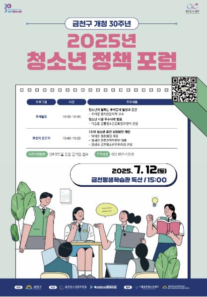 [뉴스스텝] 금천구는 오는 7월 12일 15시, 금천평생학습관 독산에서 ‘2025 금천구 청소년 정책 포럼’을 개최한다고 밝혔다.