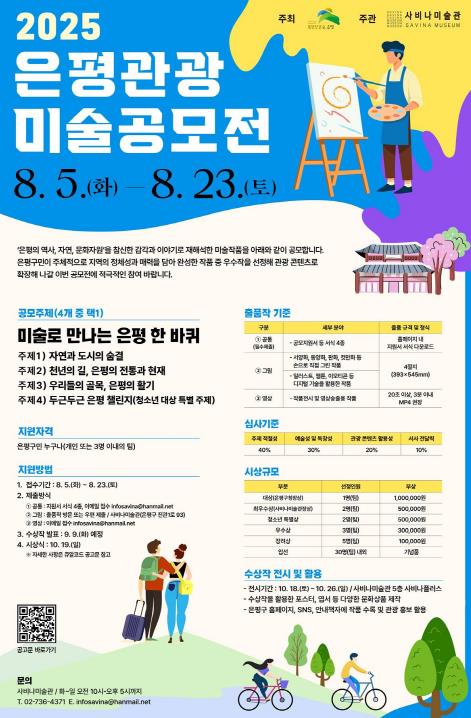 이번 공모전은 은평구가 주최하고 사비나미술관이 주관하며, 구민이 직접 참여해 은평의 역사, 문화, 자연 자원을 예술로 표현하고 이를 관광 콘텐츠로 확산하기 위해 개최됐다.