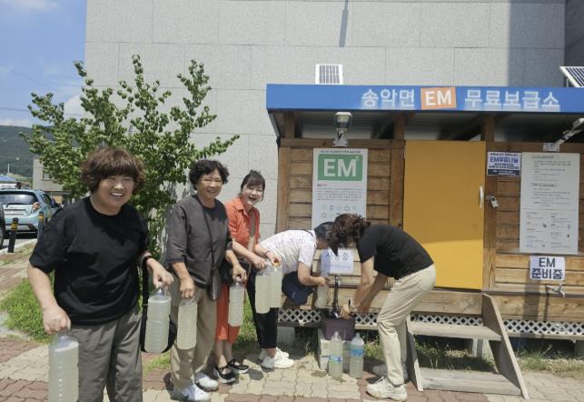 [뉴스스텝] 아산시는 송악면 생활개선회가 26일 지역 주민들의 생활환경 개선과 자원순환 실천을 위해 유용미생물(EM) 발효액을 자체적으로 만들어 무료로 배부하는 행사를 진행했다고 밝혔다.