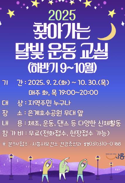 [뉴스스텝] 시흥시는 시민들의 신체활동 증진과 건강한 생활습관 형성을 위해 운영 중인 ‘찾아가는 달빛 운동교실’을 오는 9월부터 하반기 일정으로 다시 시작한다.