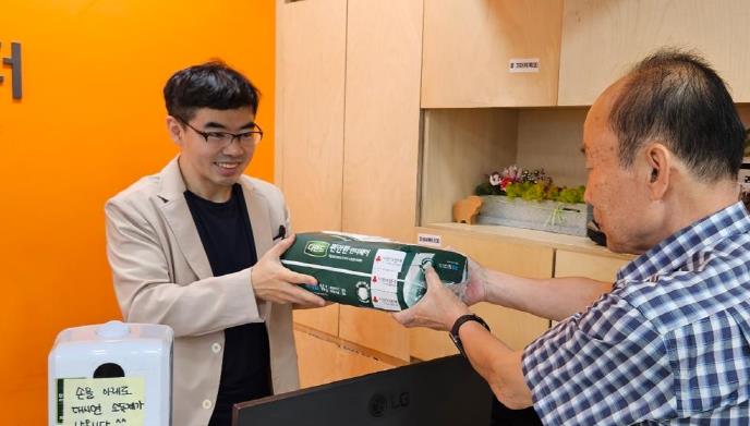 ▲ 치매안심센터에 후원물품을 전달하는 모습 |