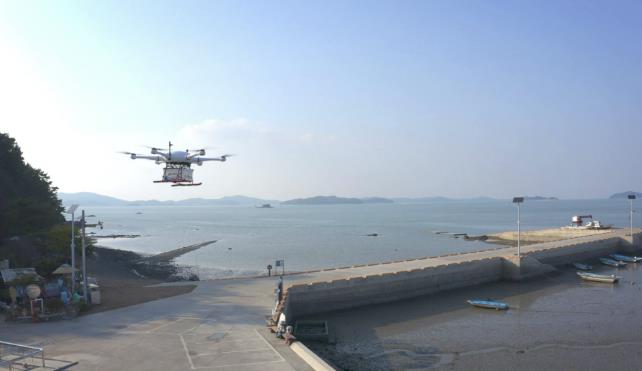 ▲ 중왕항 배송거점에서 드론이 배송을 위해 이륙하는 모습 |