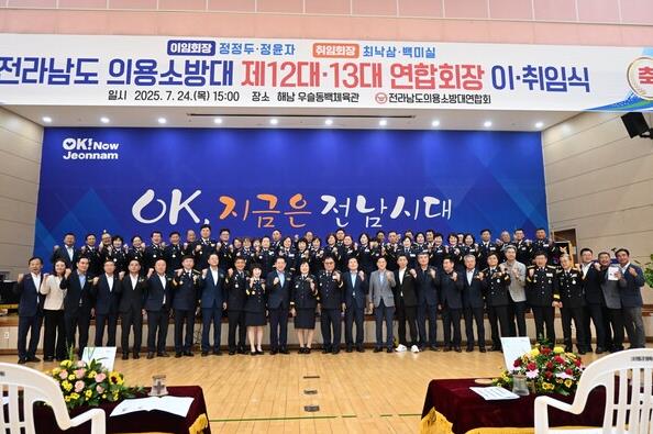 [뉴스스텝] 해남소방서는 24일 해남군 우슬동백체육관에서 제12·13대 의용소방대연합회 연합회장 이·취임식 행사를 개최했다.