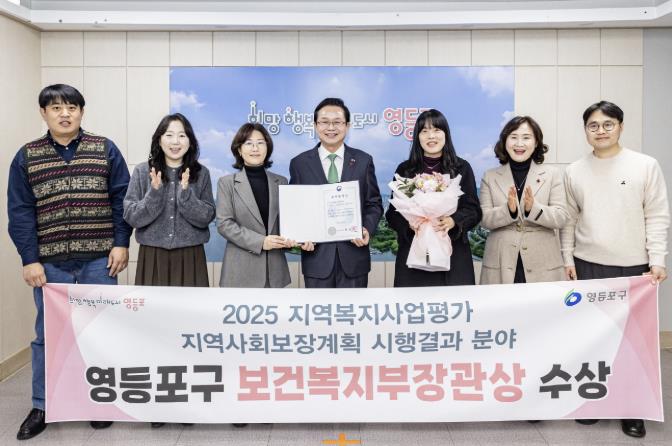 [뉴스스텝] 영등포구가 2025년 보건복지부 지역복지사업 평가 ‘지역사회보장계획 시행결과’ 부문에서 우수기관으로 선정돼 보건복지부 장관상을 수상했다고 밝혔다.