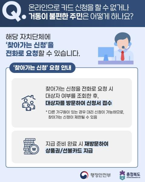 ‘찾아가는 신청’ 대상은 제천시에 주민등록을 둔 고령자, 장애인, 병원 또는 시설 입소자 등으로, 주소지 관할 읍면동 행정복지센터 또는 전용 콜센터를 통해 신청을 받는다. 신청이 접수되면 전담 공무원이 직접 거주지를 방문해 신청서를 작성하고, 본인 확인을 거쳐 지류형 소비쿠폰을 지급한다.