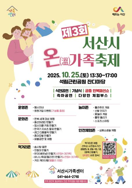 [뉴스스텝] 충남 서산시는 오는 10월 25일 석림근린공원 잔디마당 일원에서 제3회 온(溫)가족 축제를 개최한다고 밝혔다.