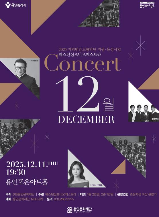 [뉴스스텝] 용인문화재단은 오는 12월 11일 오후 7시 30분, 용인포은아트홀에서 웨스턴심포니오케스트라 '콘서트 ‘12월’' 공연을 개최한다.