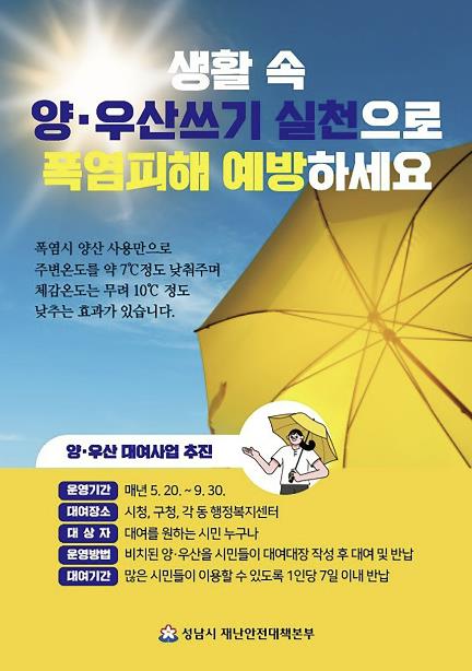 성남시 관계자는 “기후 위기 시대에 시민의 안전과 건강을 지키는 일은 시의 최우선 과제”라며, “양산·우산 무료 대여사업이 폭염과 호우로부터 시민을 보호하고, 일상 속 불편까지 덜어주는 실질적인 대책이 되길 바란다”고 말했다.