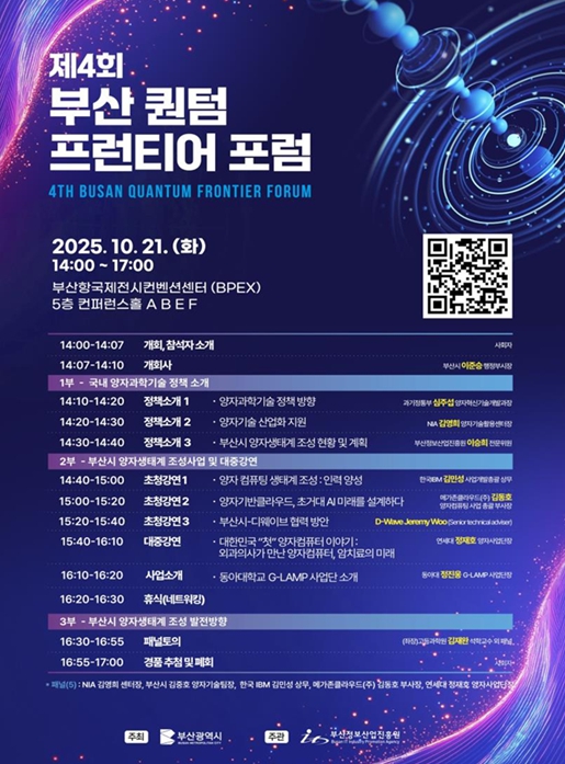 [뉴스스텝] 부산시는 오는 10월 21일 오후 2시 부산항국제전시컨벤션센터 컨퍼런스홀에서 '제4회 부산시 퀀텀 프런티어 포럼'을 개최한다고 밝혔다.