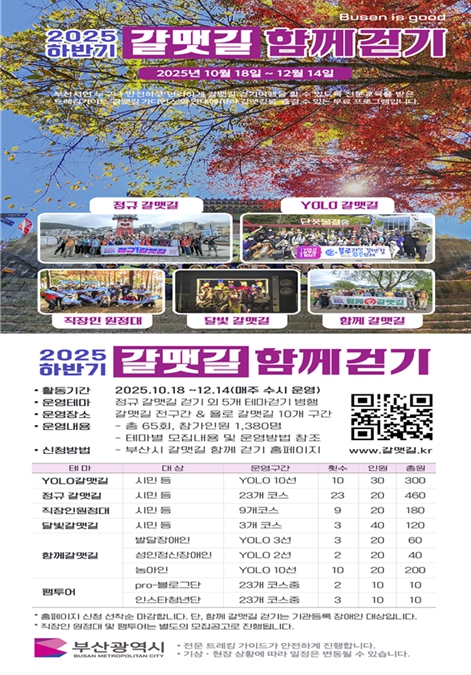 10.18.~12.14. '2025년 하반기 욜로(YOLO) 갈맷길 함께 걷기 행사' 운영