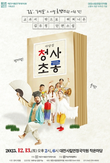 [뉴스스텝] 대전시립연정국악원은 친구, 연인 그리고 온 가족이 함께 즐겁고 유쾌하게 볼 수 국악융합극‘청사초롱’을 13일 14시와 18시에 국악원 작은마당에서 개최한다.