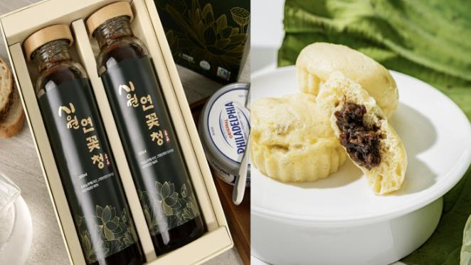 ▲ 2025 시흥시 로컬-페어트레이드 제품개발(왼쪽이 연꽃청, 오른쪽이 연꽃빵)