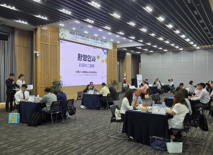 | ▲ 수원시가 지난 7월 3일 시청 중회의실에서 ‘2025 일본바이어 방한 수출상담회’를 열고 있다. |