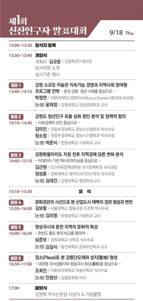 강원학연구센터 관계자는 “이번 발표대회는 강원 지역에 대한 젊은 연구자들의 참신한 시각과 학문적 가능성을 엿볼 수 있는 자리”라며 “강원학의 지속 가능한 발전을 위해 앞으로도 신진연구자들을 적극 발굴·지원할 계획”이라고 밝혔다.