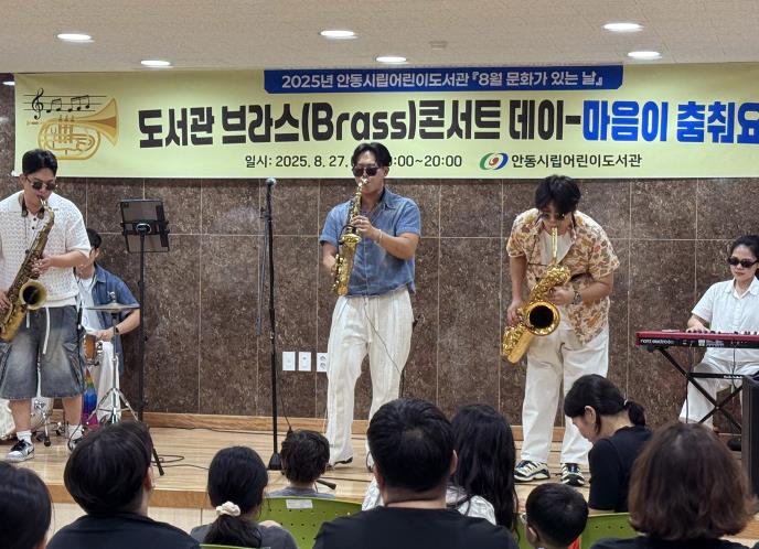 [뉴스스텝] 안동시립어린이도서관은 8월 27일, 8월 ‘문화가 있는 날’을 맞아 시민과 함께하는 특별 공연 ‘도서관 브라스 콘서트 데이-마음이 춤춰요’ 행사를 성황리에 마무리했다고 밝혔다.