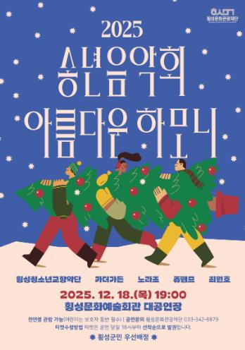 [뉴스스텝] 횡성문화관광재단은 오는 18일 19시, 횡성문화예술회관 대공연장에서 한 해를 마무리하는 따뜻한 문화행사로 ‘2025년 송년음악회 – 아름다운 하모니’를 개최한다.