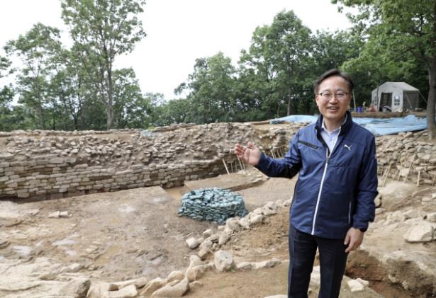 ▲ 유성훈 금천구청장이 서울 호암산성 발굴 조사지를 소개하고 있다 |