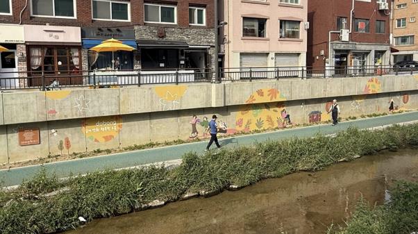 [뉴스스텝] 방학천(금강아미움 맞은편~방학교) 옹벽 약 360m 구간이 걷고 싶고 머무르고 싶은 산책길로 탈바꿈했다.