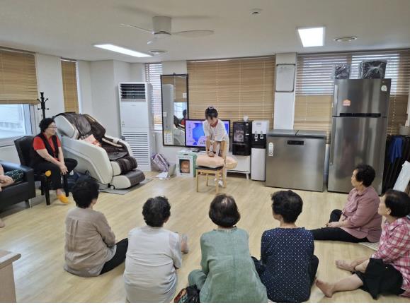 | ▲ 지난해 8월, 동작구 사당2동 남성경로당에서 응급구조사가 심폐소생술 안전교육을 하고 있다. |