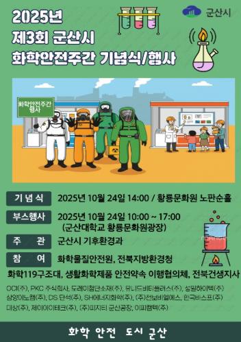 [뉴스스텝] ‘화학사고 없는 안전도시 군산’ 실현을 위해 오는 10월 20일부터 24일까지‘제3회 군산시 화학안전주간’행사가 열린다.