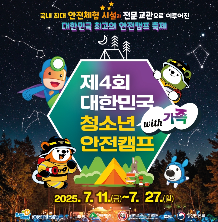 [뉴스스텝] 태백시와 강원특별자치도소방본부가 공동으로 개최하고 행정안전부가 후원하는 ‘제4회 대한민국 청소년 안전캠프’가 오는 7월 11일부터 365세이프타운에서 개막한다.