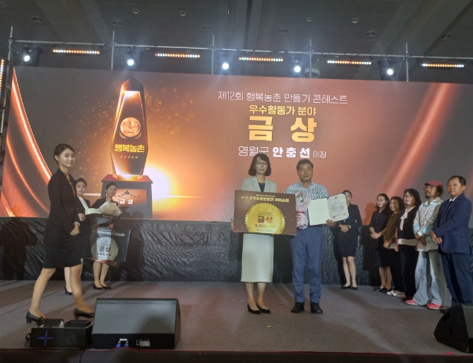 [뉴스스텝] 영월군은 운학1리 이장 안충선 씨가 2025년 9월 17일 과천 한국마사회 럭키빌에서 열린 '제12회 행복농촌 만들기 콘테스트'에서 우수활동가 분야 금상(장관상)을 수상했다고 밝혔다.
