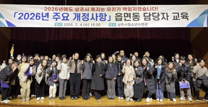 [뉴스스텝] 상주시에서는 지난 4일 청소년수련관에서 읍면동 공무원을 대상으로 2026년 주요 복지사업 개정사항에 대한 전달교육을 실시했다.