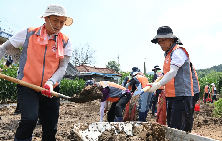 또한, 25일 예정됐던 전사 혁신토론회를 연기하고, 김동철 사장과 최철호 전력노조위원장을 비롯한 경영진, 본사 처․실장, 지역본부장, 노조간부 등 임직원 150여명이 경기도 가평군 상면과 경남 산청군 등 피해 현장을 직접 찾아 구호 물품 기탁, 침수 주택 청소, 가재도구 정리, 급식 봉사 등 노사합동 복구활동을 펼쳤다.