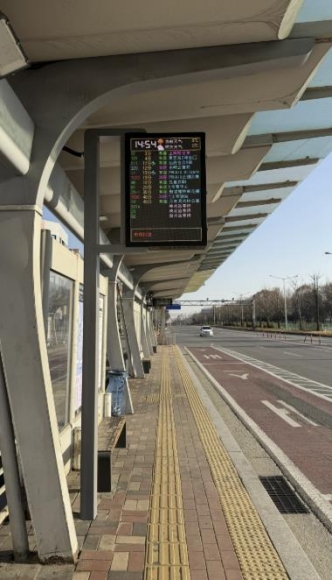 | ▲ 다국어 지원 버스정보안내기가 설치된 안산역 버스정류장 전경. |