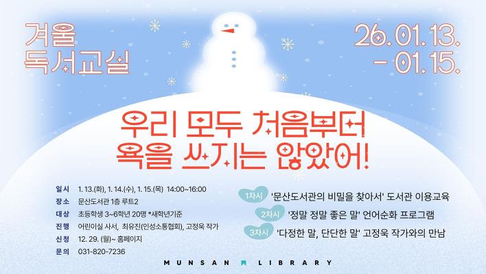 | ▲ 파주시 문산도서관, 2026년 겨울독서교실 운영 |