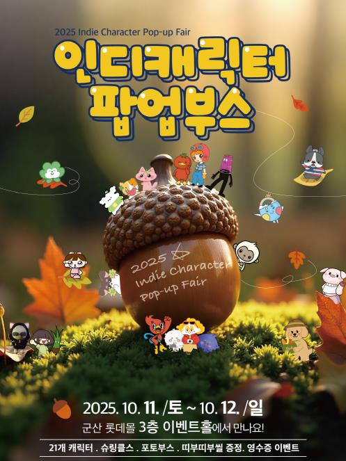 [뉴스스텝] 군산시 청년뜰 창업센터가 캐릭터 분야 창업가와 예비창업가 의 제품 홍보 및 판로개척을 지원하는 ‘롯데몰 연계 인디캐릭터 팝업부스 지원사업’을 오는 10월 11일부터 12일까지 진행한다.