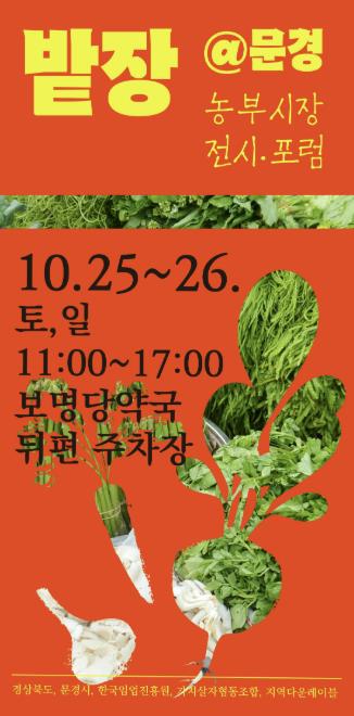 이와 함께, 행사장 한편에선 마르쉐 농부시장(유럽형 농부마켓)을 모티브로 한 '밭장페스타'가 양일간 열려 지역의 소규모 농가 생산품·가공품·먹거리 부스를 전시·판매하는 등 행사장을 찾은 방문객에게 보고 먹고 즐기는 완벽한 하루를 선사할 예정이다.
