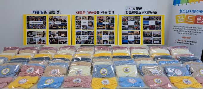 | ▲ 남해군 학교밖청소년지원센터 봉사동아리, 목도리 기부 |