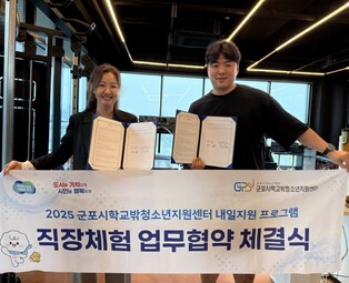 [뉴스스텝] 군포시청소년재단(대표이사 김덕희), 군포시학교밖청소년지원센터(센터장 강연미)는 조직 운영 및 마케팅에 관심 있는 학교 밖 청소년의 진로 탐색과 현장 경험 확대를 위해 내셔널국가대표PT센터(대표 김택용)와 직장체험 업무협약을 체결했다고 밝혔다.이번 협약은 학교 밖 청소년이 단순한 이론 학습을 넘어 실제 사업 운영의 흐름을 이해하고, 조직 내 역할과 고객 관리, 서비스 운영 등 경영 전반의 실무를