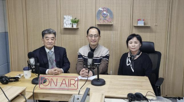 | ▲ 지난 6일 첫 방송을 녹음한 참석자들이 기념사진을 촬영하고 있다.(왼쪽부터 우명동 성신여대 명예교수, 자치분권협의회 구균철 의장, 윤양옥 위원) |