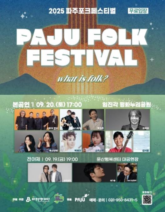 김경일 파주시장은 “파주포크페스티벌은 가을의 초입에서 포크 음악의 깊이와 평화의 내용을 시민들과 함께 나누는 음악 축제”라며 “안전하고 질서 있는 축제 운영으로 시민 모두가 함께 즐겁게 참여할 수 있도록 최선을 다하겠다”라고 말했다.