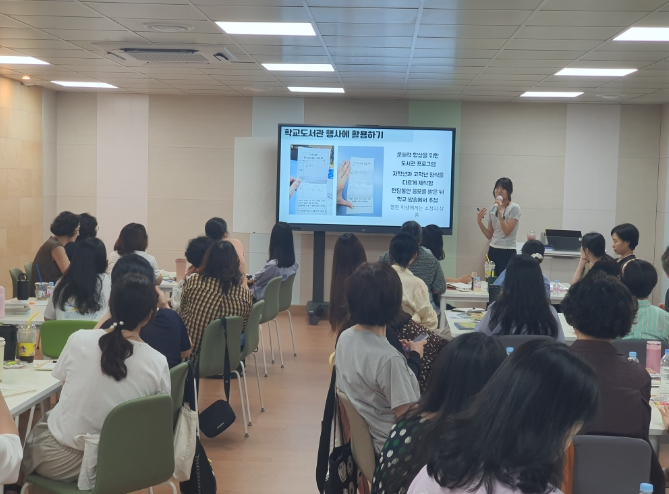 연수는 ▼에듀테크로 똑똑해지는 독서교육, ▼단단한 독자를 기르는 학교도서관 문해력 가이드, ▼AI, 숏폼 시대 글쓰기 및 저작권 등 현장에서 활용할 수 있는 다양한 사례와 실습 교육으로 진행되어 호응도가 높았다.