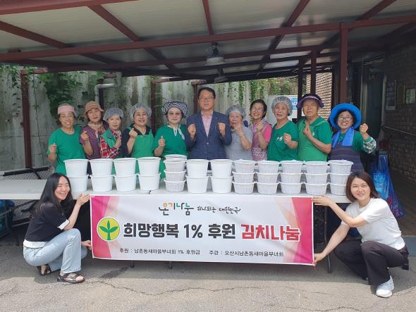 [뉴스스텝] 오산시 남촌동 행정복지센터는 지난 23일 남촌동 새마을 부녀회(회장 안길순)에서 관내 취약계층을 위한 ‘희망행복 1% 후원 김치 나눔’행사를 진행했다고 밝혔다.